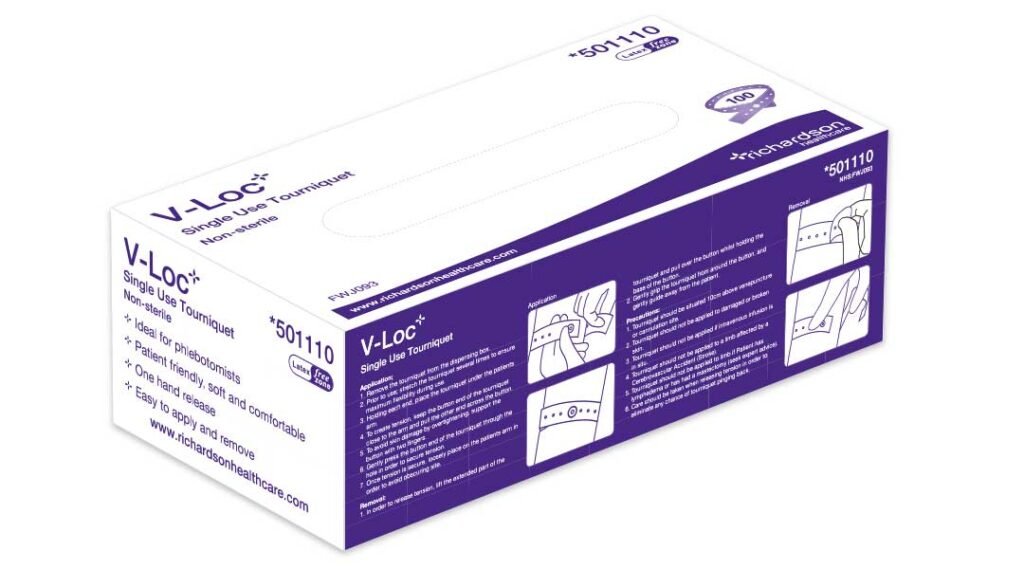 V-Loc is a single use non-slip tourniquet equipped with a secure locking mechanism that enables single-handed release of the device, optimising ease of use and cross-infection prevention compliance.